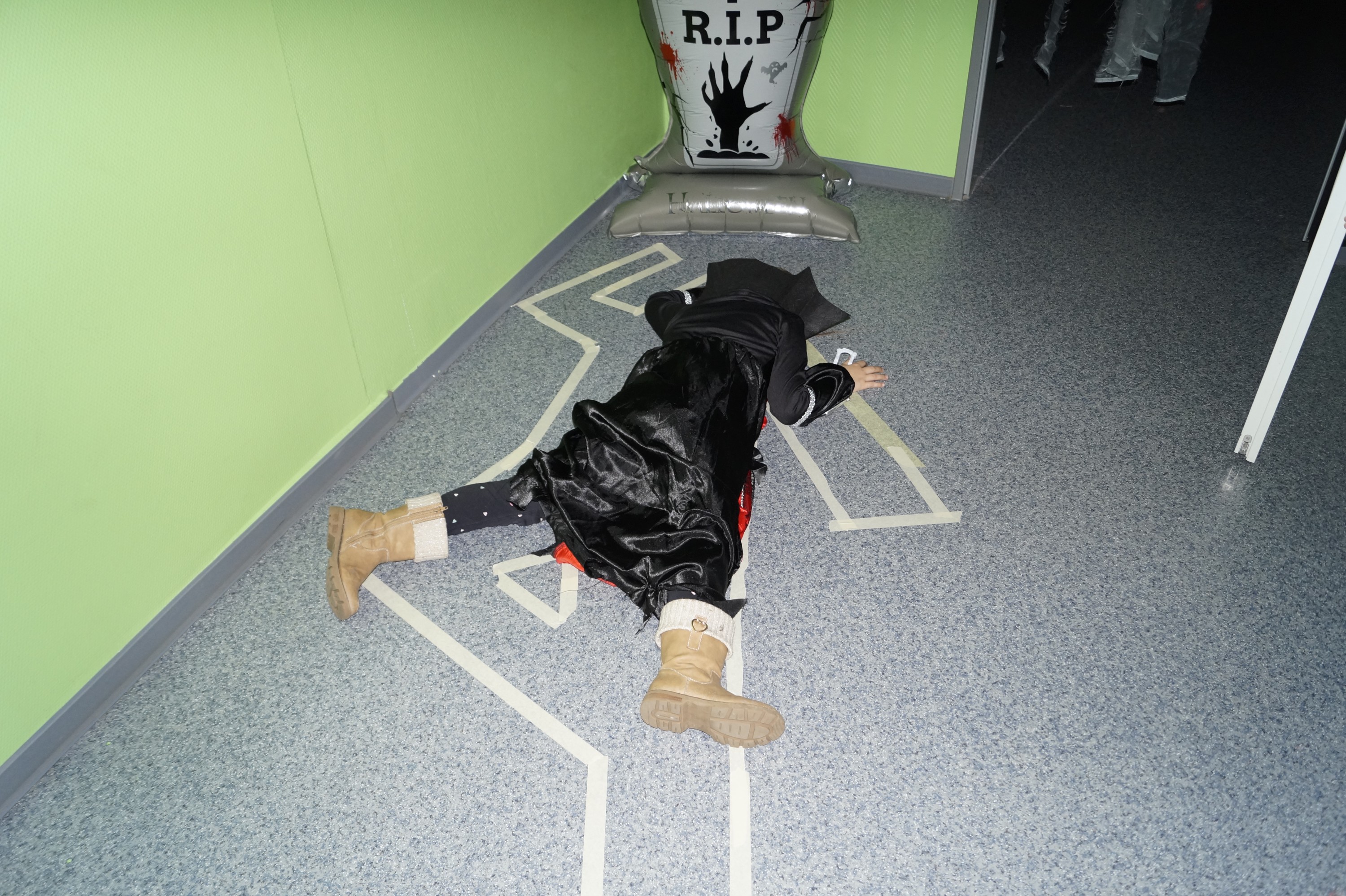 Am 30. Oktober verwandelte sich unser Hort in ein kleines Spukhaus: Hexen im Flur, ein aufgeblasener Geist am Eingang, ein "Tatort" im Obergeschoss und ein liebevoll vorbereitetes Gruselbuffet sorgten für die perfekte Stimmung.