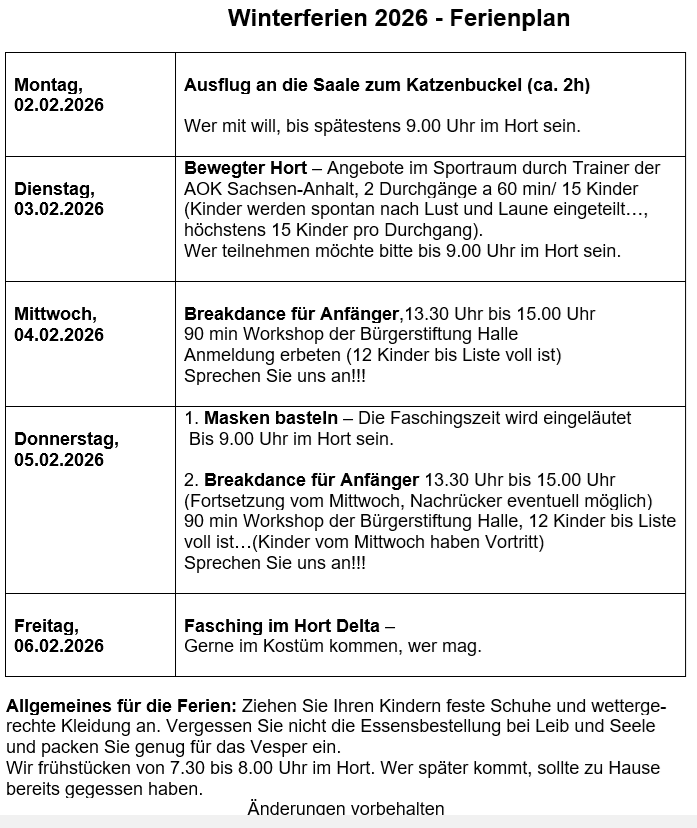 - Ferienzeit: Montag bis Freitag 07.00 bis 17.00 Uhr (ab 2026, laut Kuratoriumsbeschluss)