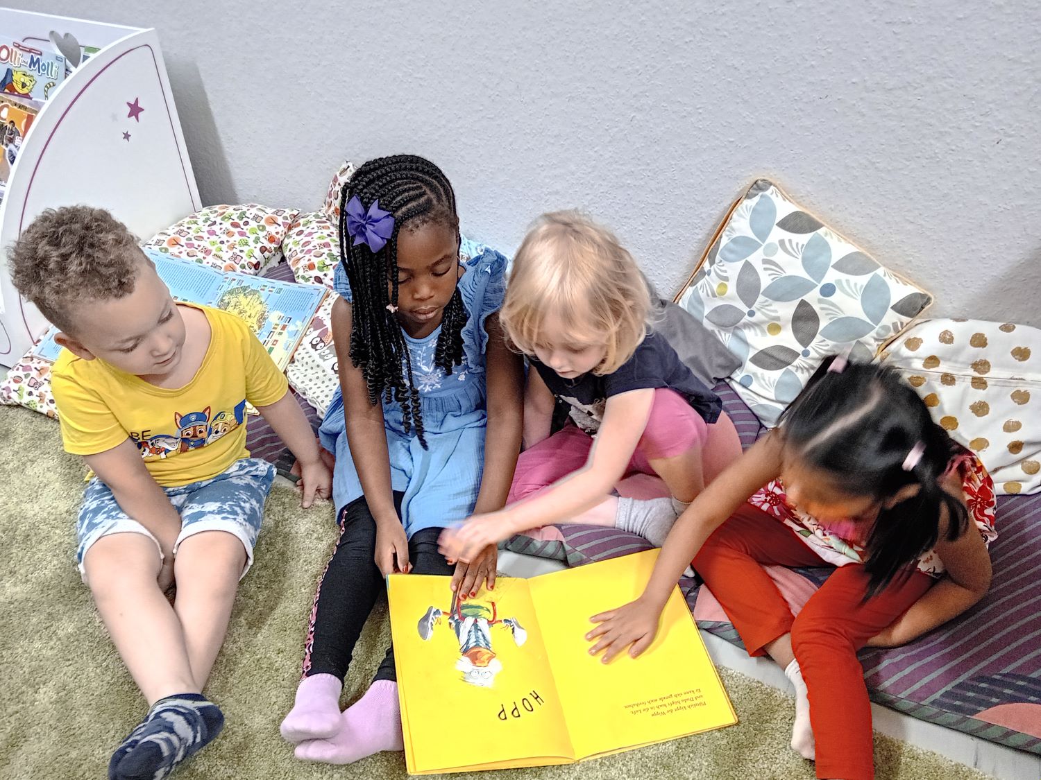 Seit 2019 tragen wir das "Gütesiegel Buchkindergarten".Jeden Mittwoch ist Lese Eule Hedwig in unserer Bibliothek unterwegs, um Geschichten zu erzählen.Das Vorlesen, Bilderbuch betrachten und Erzählen sind Bausteine, um die kognitive und sprachliche Entwicklung von Kindern zu begleiten.Wer schon früh die spannende Welt der Geschichten entdeckt, wird meist viel leichteren Zugang zum späteren Lesen finden.
