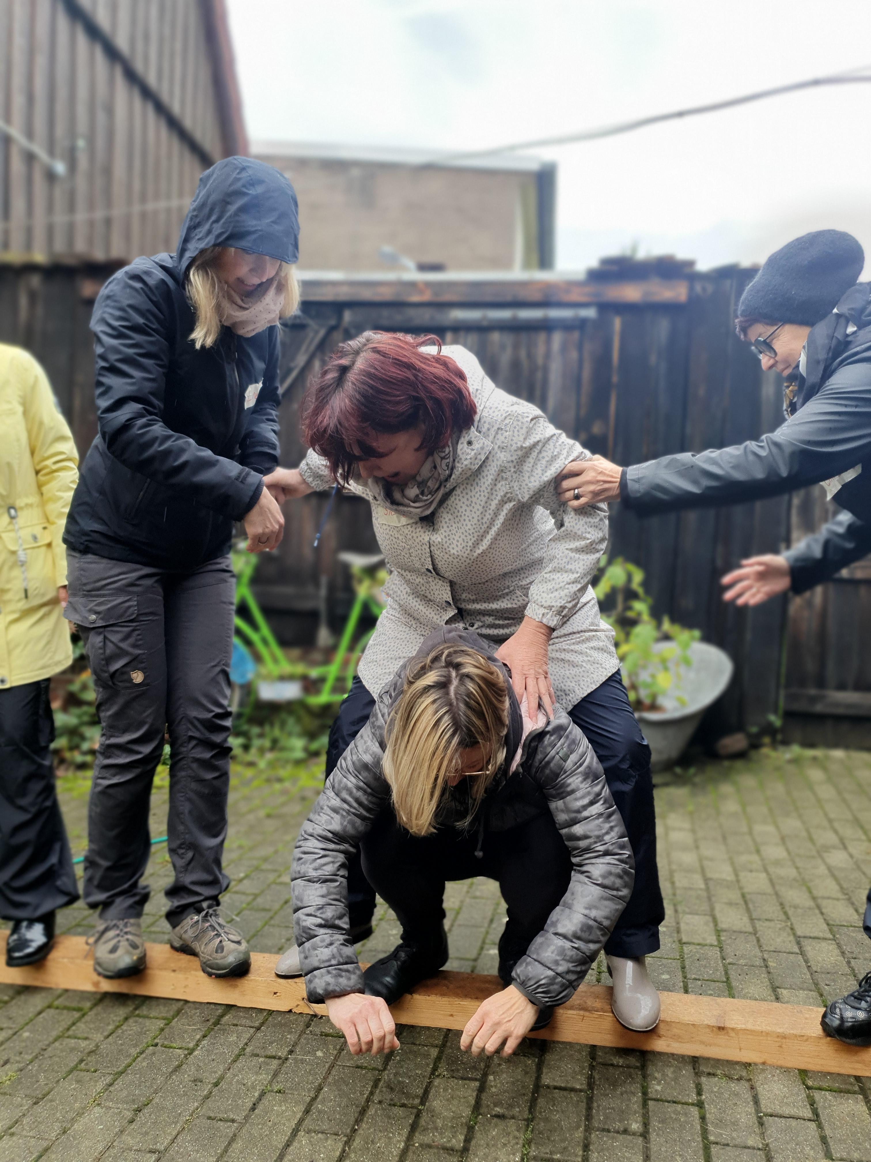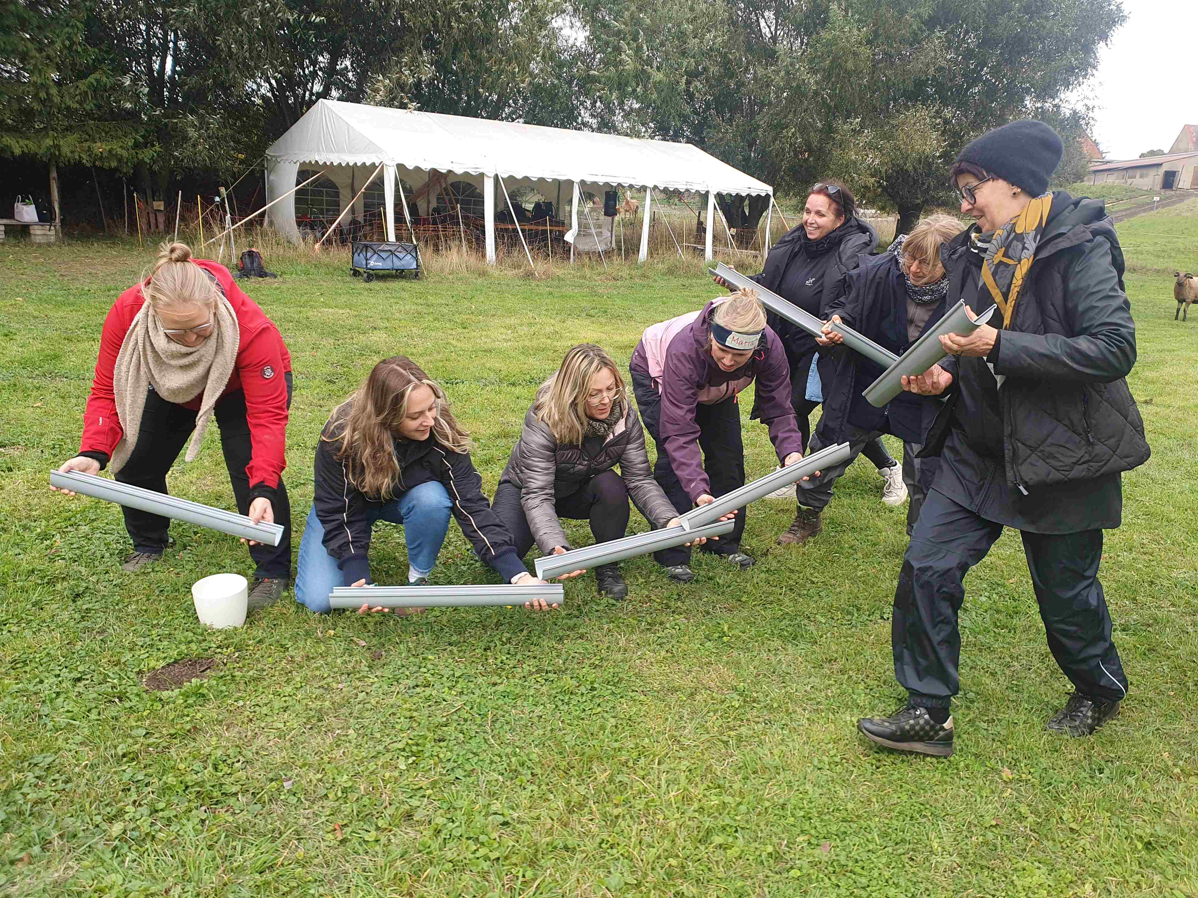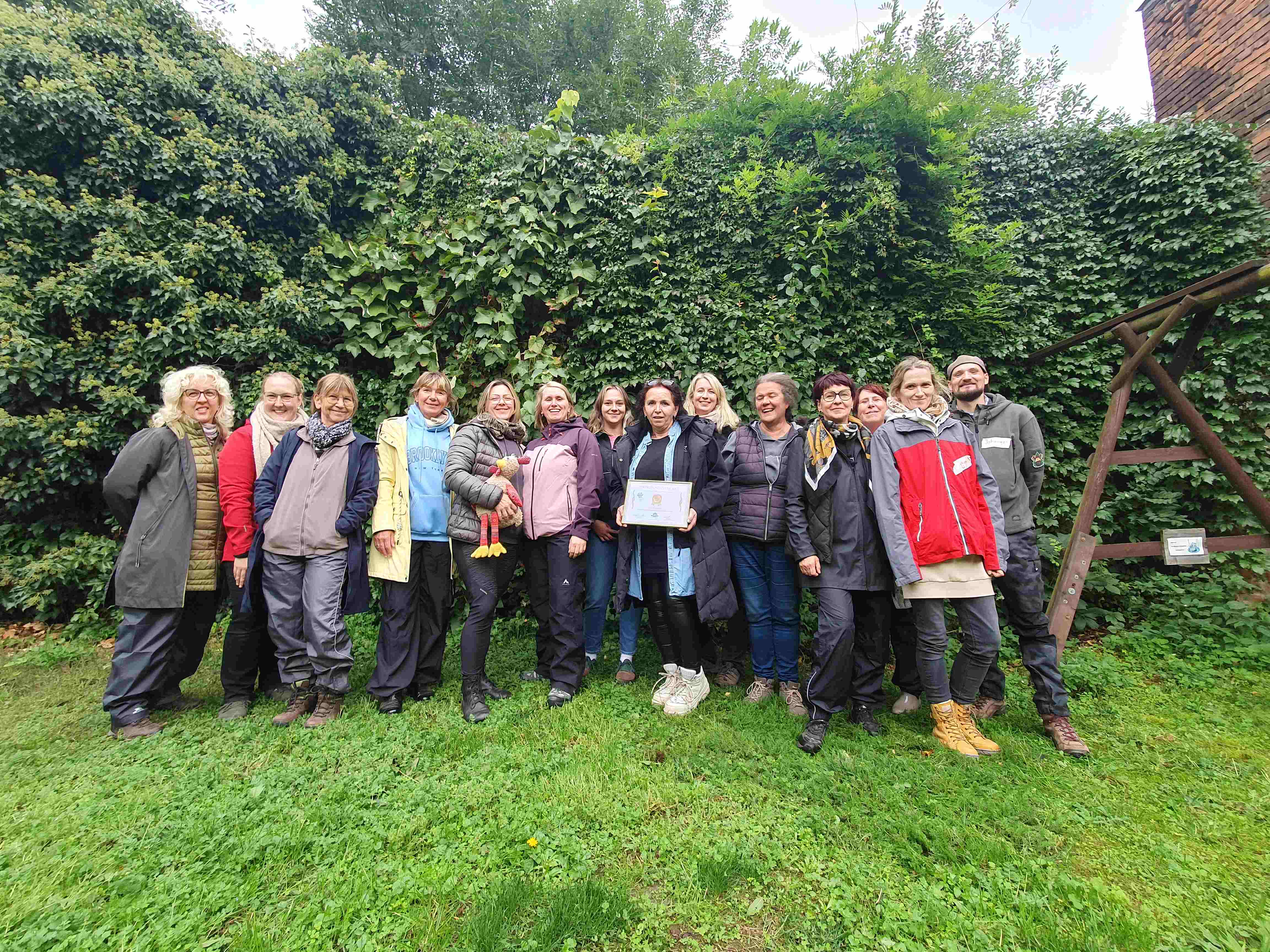 Unsere diesjährige Teamweiterbildung fand, aufgrund unserer veränderten Teamkonstellation, ganz im Namen von Teambuilding statt. Am 26.09.25 besuchten wir zunächst den Hofcampus "Grüne Kuh" und setzten uns dort theoretisch und v.a. praktisch mit dem Persönlichkeitstypen nach dem DISG-Modell auseinander. Unter Beobachtung unserer tierischen Begleitung (Schafe) brachen wir bspw. gemeinsam aus einem Gefängnis aus, praktizierten Yoga und genossen ein wunderschönes Picknick. Den Abend ließen wir gemeinsam als Team ausklingen. Am Samstagvormittag setzten wir uns zum Einen mit der Frage auseinander, wie wir unseren Kita-Alltag für unsere Kinder noch attraktiver gestalten können und zum Anderen damit, welche Stärken (mit Hilfe der Stärkenkarten von bfkm) ein Jeder von uns dafür mit ins Team bringt. Nach einem weiteren kulinarischen Picknickhöhepunkt folgte als Abschluss der Besuch im Kunstkraftwerk Leipzig (Organics).