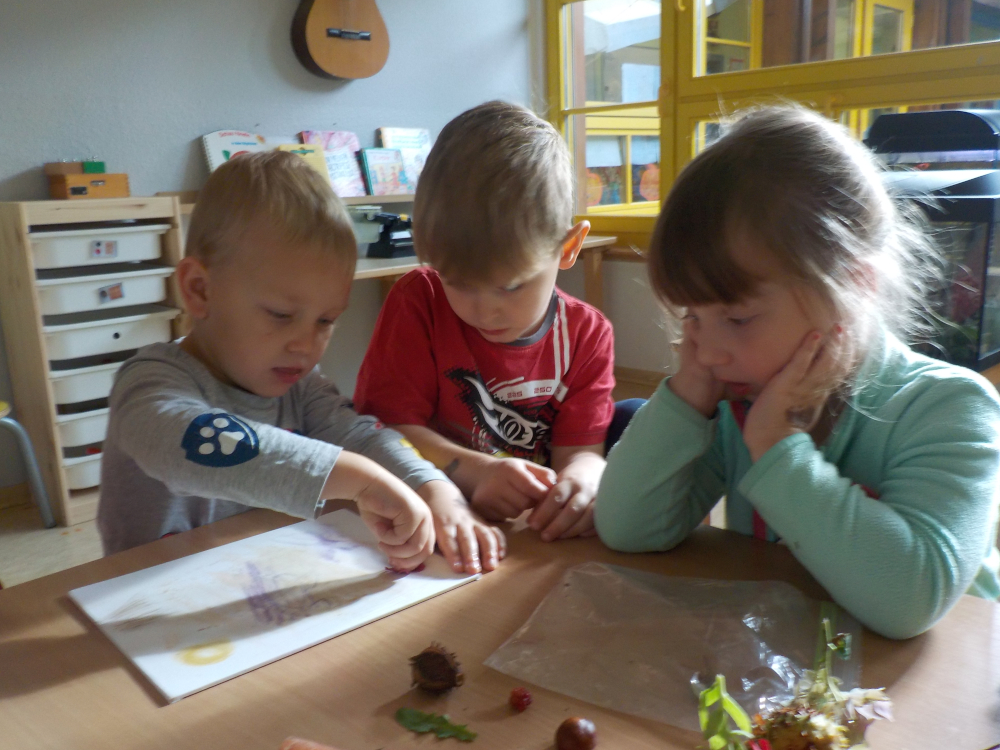 Die Kinder experimentieren mit verschieden Naturmaterialien. Dabei stellen sie sich der Frage, ob Früchte, Pflanzen und Gemüse Spuren hinterlassen. Sie erfahren bei diesem Experiment Selbstwirksamkeit und erlangen naturwissenschaftliche Kenntnisse.