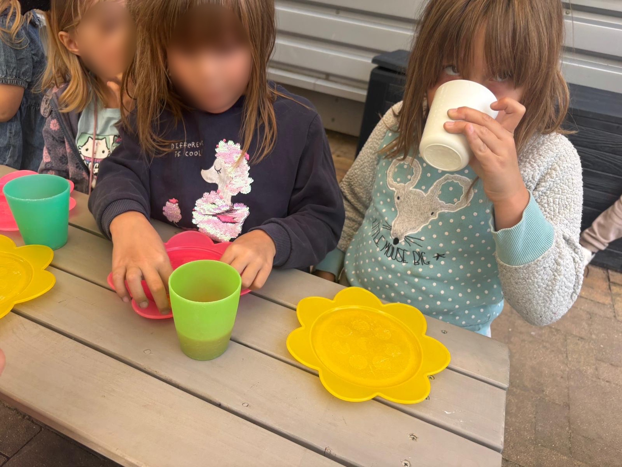 Die Kinder konnten den gesamten Prozess – vom Pflücken bis hin zum fertigen Getränk – aktiv miterleben und dabei entdecken, wie wertvoll unsere natürlichen Ressourcen sind. Das gemeinsame Ausprobieren förderte nicht nur das Verständnis für Nachhaltigkeit, sondern bereitete allen auch viel Freude. Beim anschließenden Vesper wurde der selbst hergestellte Saft mit Genuss getrunken – ein echtes Highlight im Kita-Alltag.