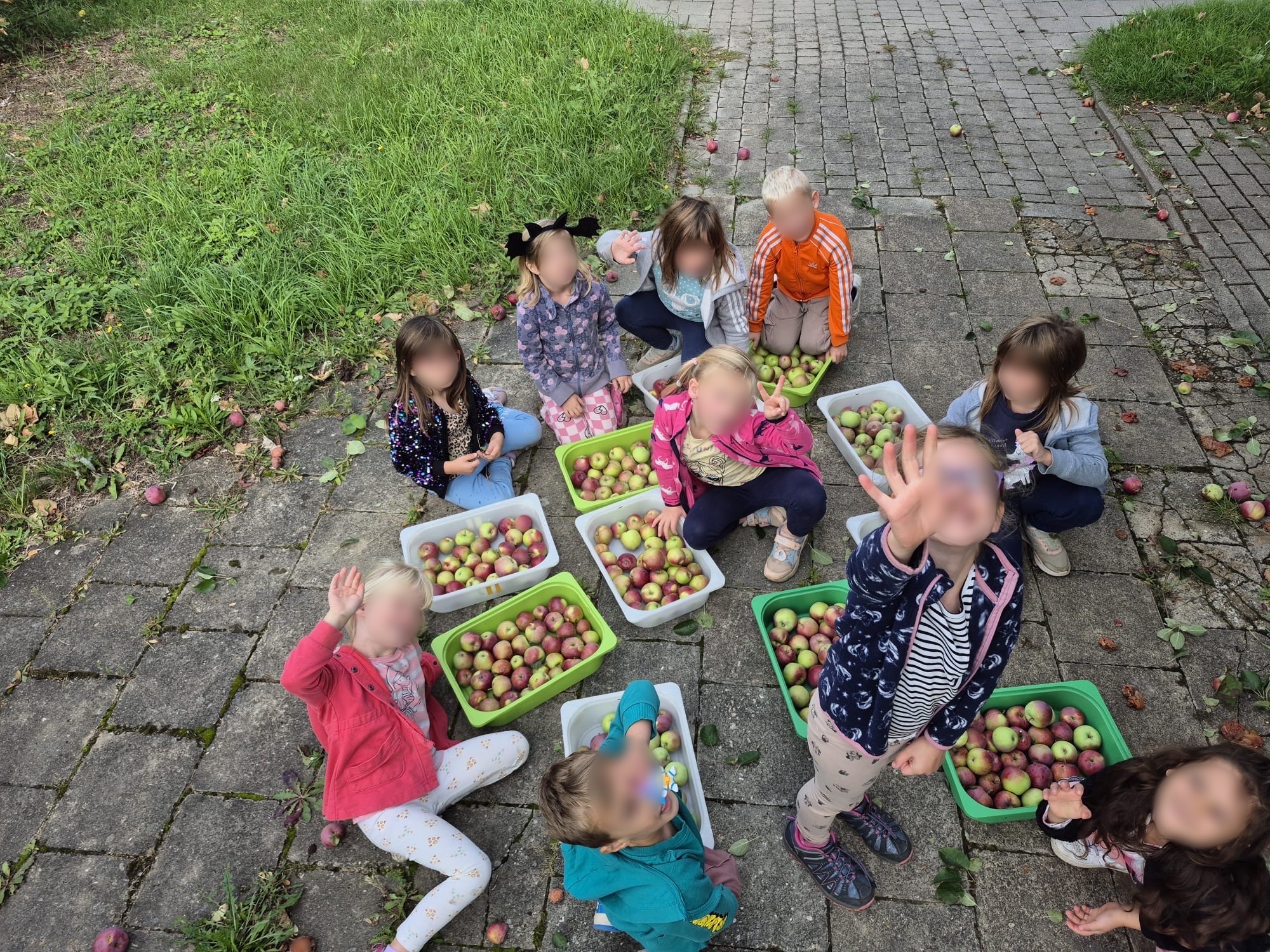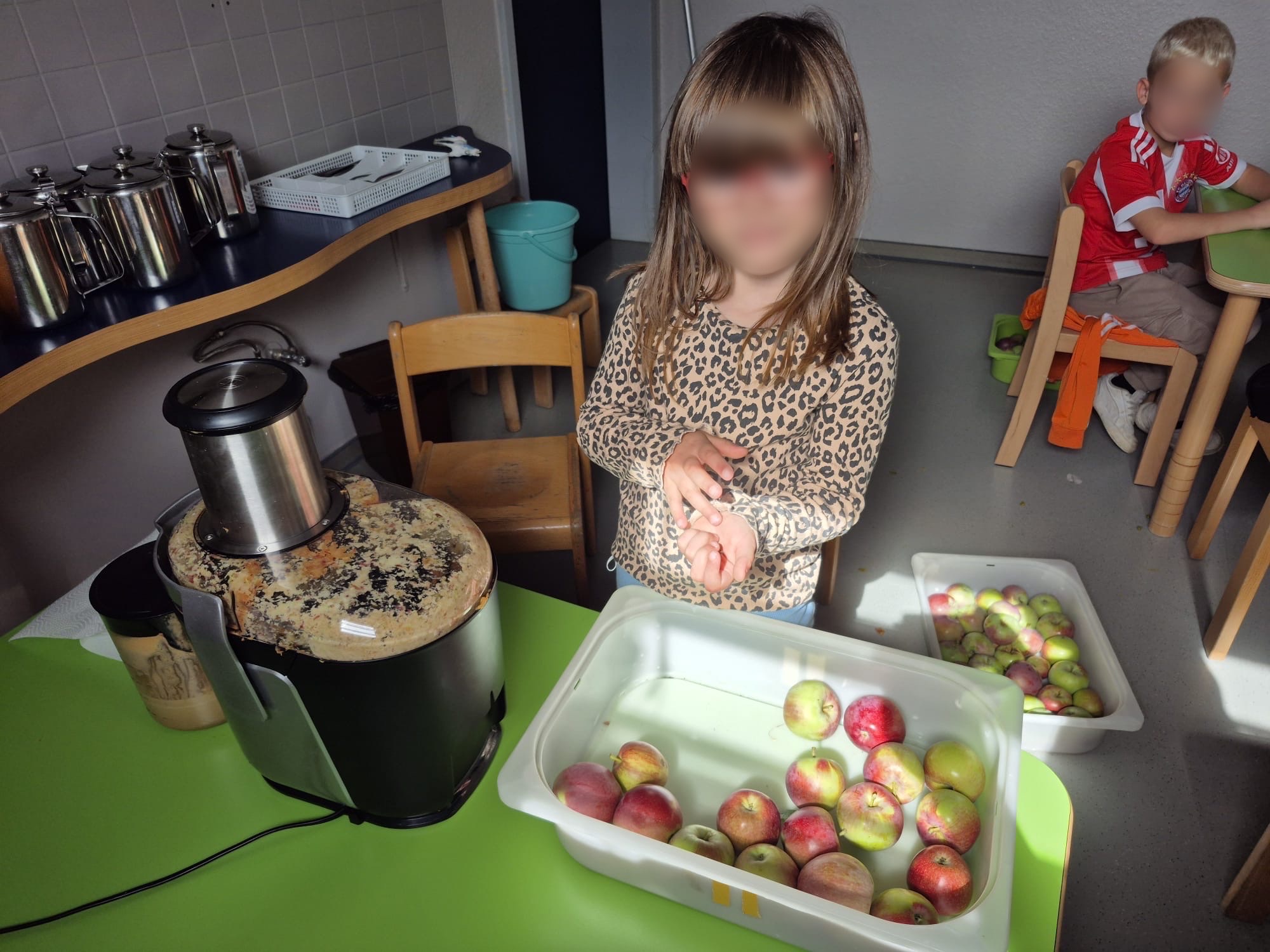 An unserer Kita steht ein großer Apfelbaum, dessen Früchte die Kinder in diesem Jahr mit Begeisterung geerntet haben. Gemeinsam wurden die Bio-Äpfel sorgfältig gesammelt und anschließend mit unserer Entsafter-Maschine zu frischem Apfelsaft verarbeitet.