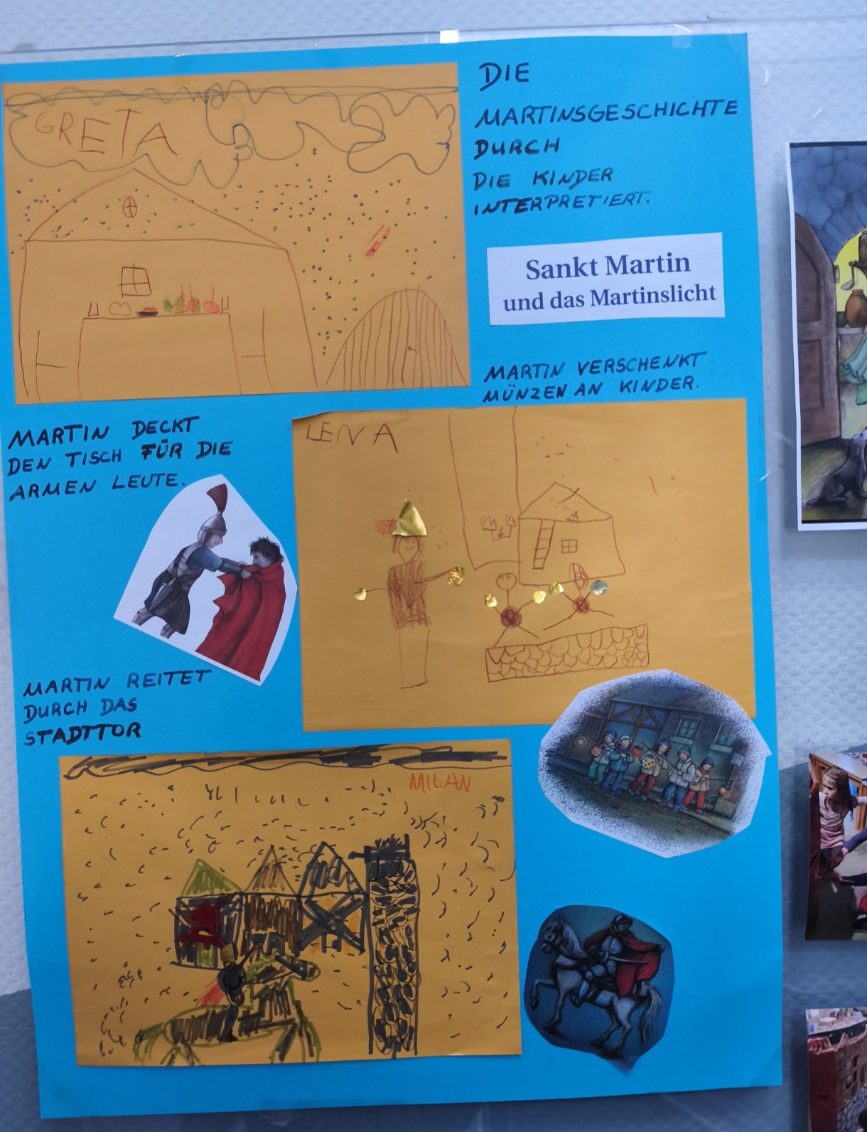 Gemeinsam mit ihren Erzieherinnen und Erziehern entdecken die Kinder die Martinsgeschichte, diesmal auf ganz besondere Weise: Mit bunten Illustrationen und liebevoll gestalteten Schnipselbildern wird die alte Geschichte lebendig.