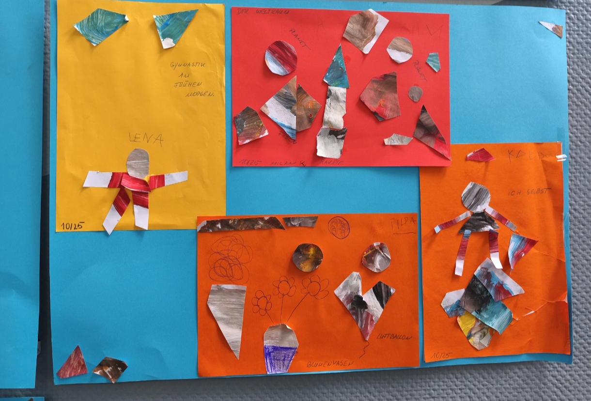 Das entstandene Gemeinschaftswerk hängt nun im Flur unserer Einrichtung – als sichtbares Zeichen für die Vielfalt, Ausdruckskraft und Begeisterung, mit der Kinder Kunst entdecken, erleben und mitgestalten.