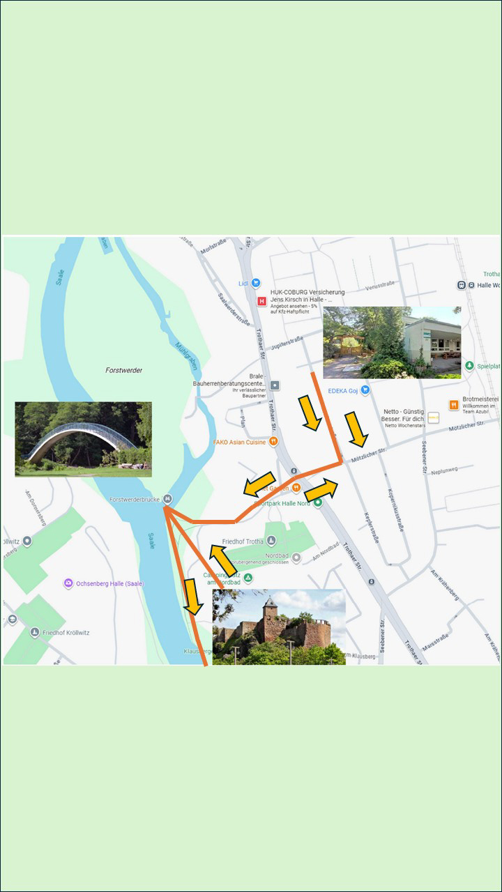 Bei echtem Herbstwetter sind wir zu unserer Wanderung in Richtung Saale aufgebrochen. Unterwegs hatten die Kinder die Möglichkeit, vorbereitete Sammelboxen mit allerlei spannenden Dingen zu füllen, z.B. etwas, was vom Baum fällt, etwas Leichtes oder etwas in ihrer Lieblingsfarbe. Natürlich hatten wir auch tolle Ausblicke auf die Saale, die Petruskirche und die Burg Giebichenstein. Oberhalb der Klausberge machten wir noch ein kleines Picknick, bevor es wieder zurück in die Kita ging. Wir haben den Herbst mit allen Sinnen gespürt und die einstimmige Meinung war: "Das müssen wir nochmal machen."